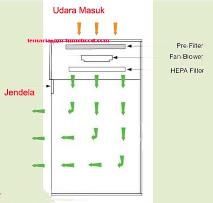 yang melewati HEPA Filter menjadi dari atas menuju ke bawah.
