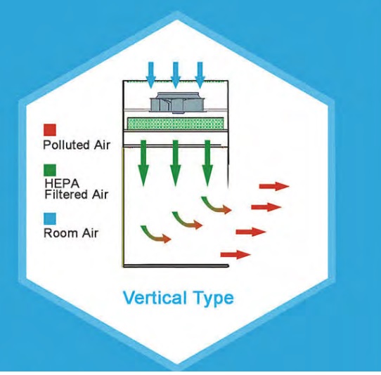 Laminar flow vertikal modelmodel BBS – DSC memiliki fitur 2 jendela. Sehingga bisa dibuka di depan dan di bagian belakang. Tekanan alian udara yang cukup membuat aliran udara dari area kontaminasi tidak masuk ke dalam.